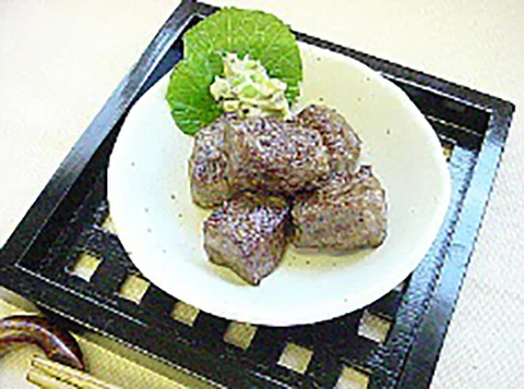 静岡県産本わさびを使用。 わさび茎のザクザクした食感と辛味がお肉料理に良く合います。